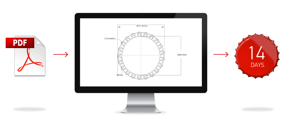 Send us your specific requirements and once the order is placed, our creative team develops your artwork and your file is approved in as little as 24 hours. Manufacturing process starts and, in record lead times, outstanding fault free crown caps arrive to your doorstep.